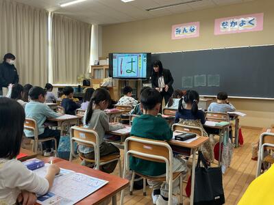 1年生、少しずつ学校生活に慣れてきています。6年生のお兄さん、お姉さんのお手伝いもあり、だんだんと準備が早くなり、今週から外遊びにも参加しています。